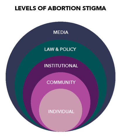 Researchers define abortion stigma as “a shared understanding that abortion is morally wrong and/or socially unacceptable.” Stigma creates discomfort around abortion, which contributes to misinformation and lack of knowledge about abortion. That misinformation and pervasive stigma is weaponized to build and maintain barriers to abortion — like laws that restrict access, institutions (like insurance companies and medical schools) that limit knowledge, and popular media that perpetuates misleading representations. In fact, anti-abortion advocates readily fill this information void with inflammatory dis-information.